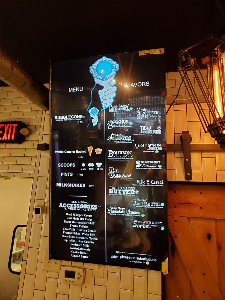 Milkcraft, located in West Hartford, CT, offers a unique menu of Pints and Quarts ice cream flavors that are sure to satisfy any sweet tooth. Their innovative creations include Blue Cookie Butter, Bourbon Breakfast, Mexican Chocolate Churro, Milk and Cereal, PB&J Roasted Banana, and Red Velvet Rick Cake. Each flavor is priced at $12.99 and is made with high-quality ingredients like Speculoos Cookies, Small Batch Bourbon Maple, Dulce DeLeche, and Vermont Creamery. The location also boasts various amenities such as free Wi-Fi, wheelchair accessibility, and free parking options. With their creative combinations and cozy atmosphere, Milkcraft is a must-visit destination for dessert lovers looking for a memorable and delicious experience.
